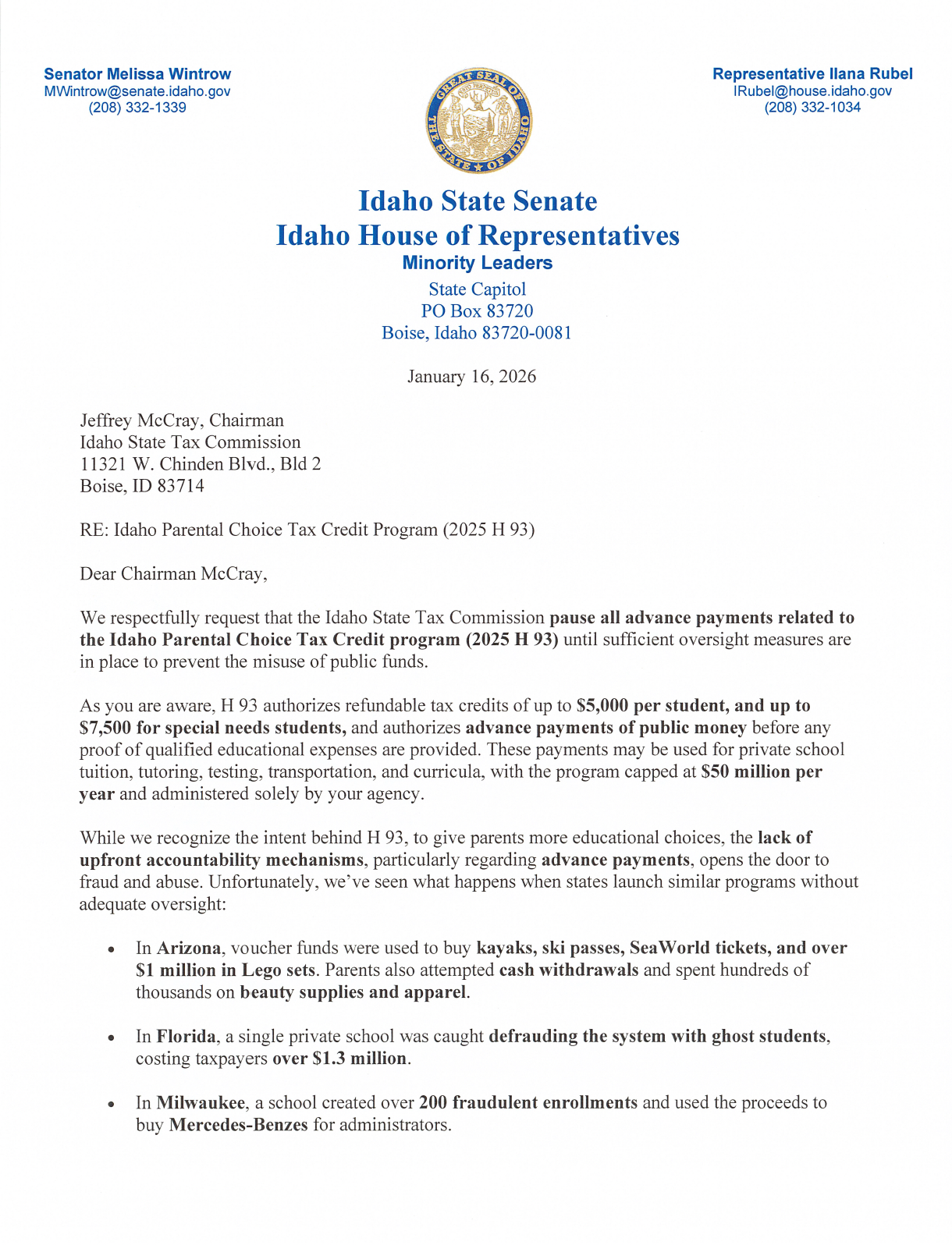 Idaho Democrats call to pause Parental Choice Tax Credit program funds